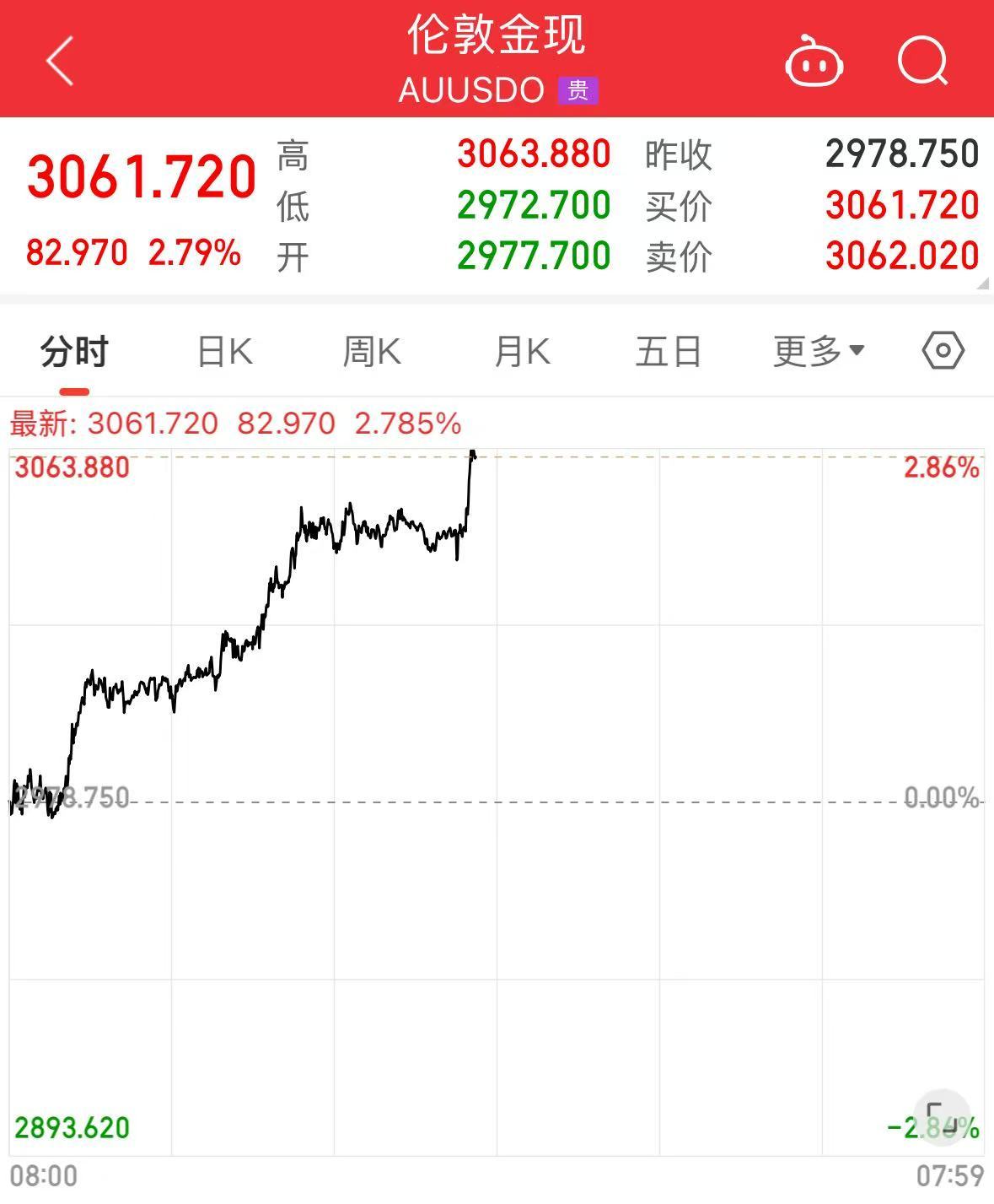 现货黄金、白银快速拉升,伦敦金现上涨2.79%,伦敦银现涨超3%。
