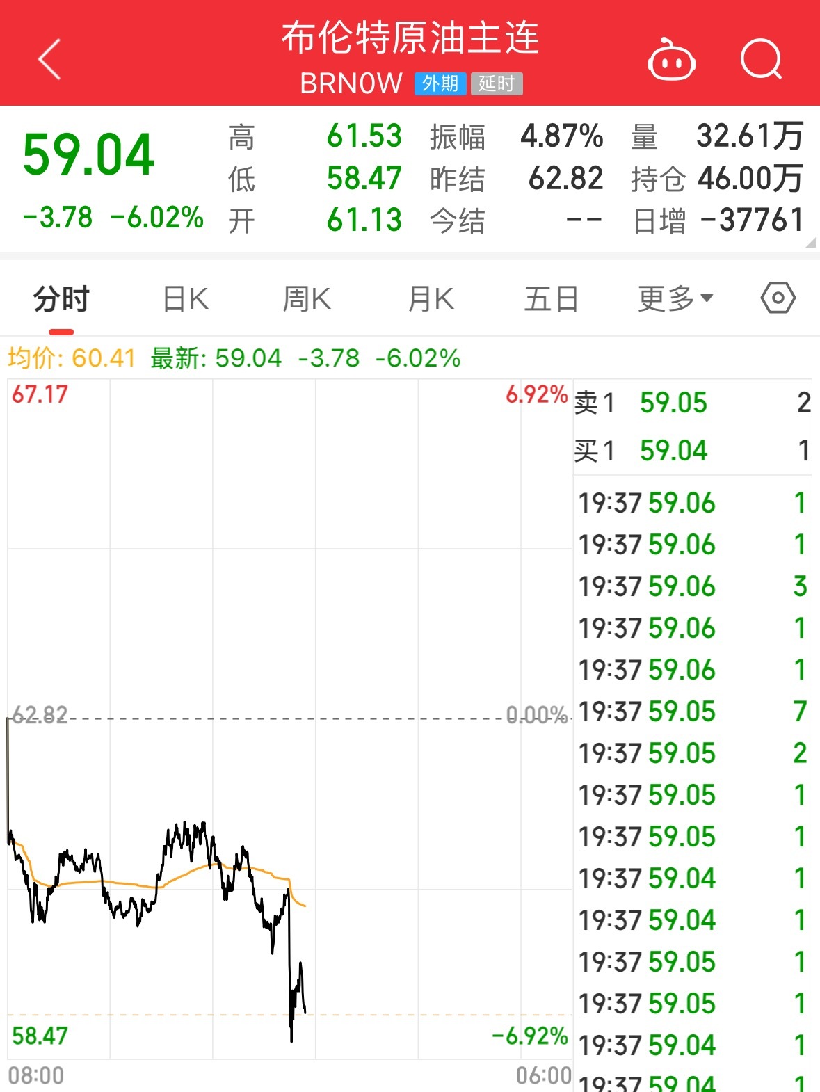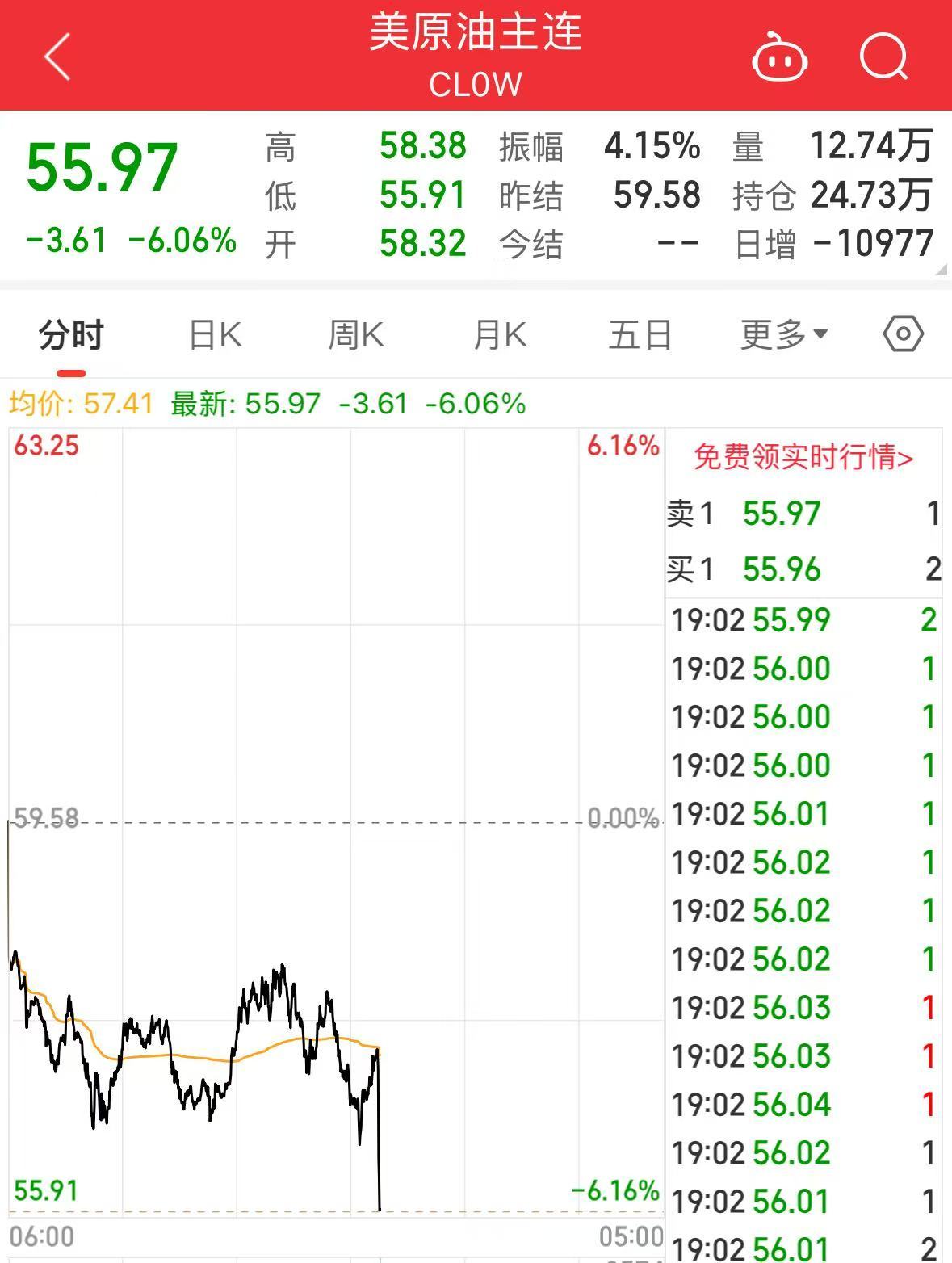 国际原油价格跳水,布油、美油跌超6%。